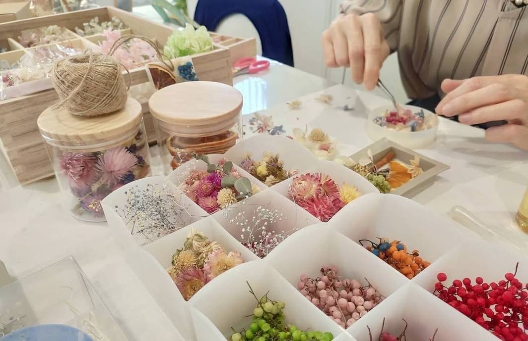 そして、ピンセットでドライフラワーをのせて飾り付け