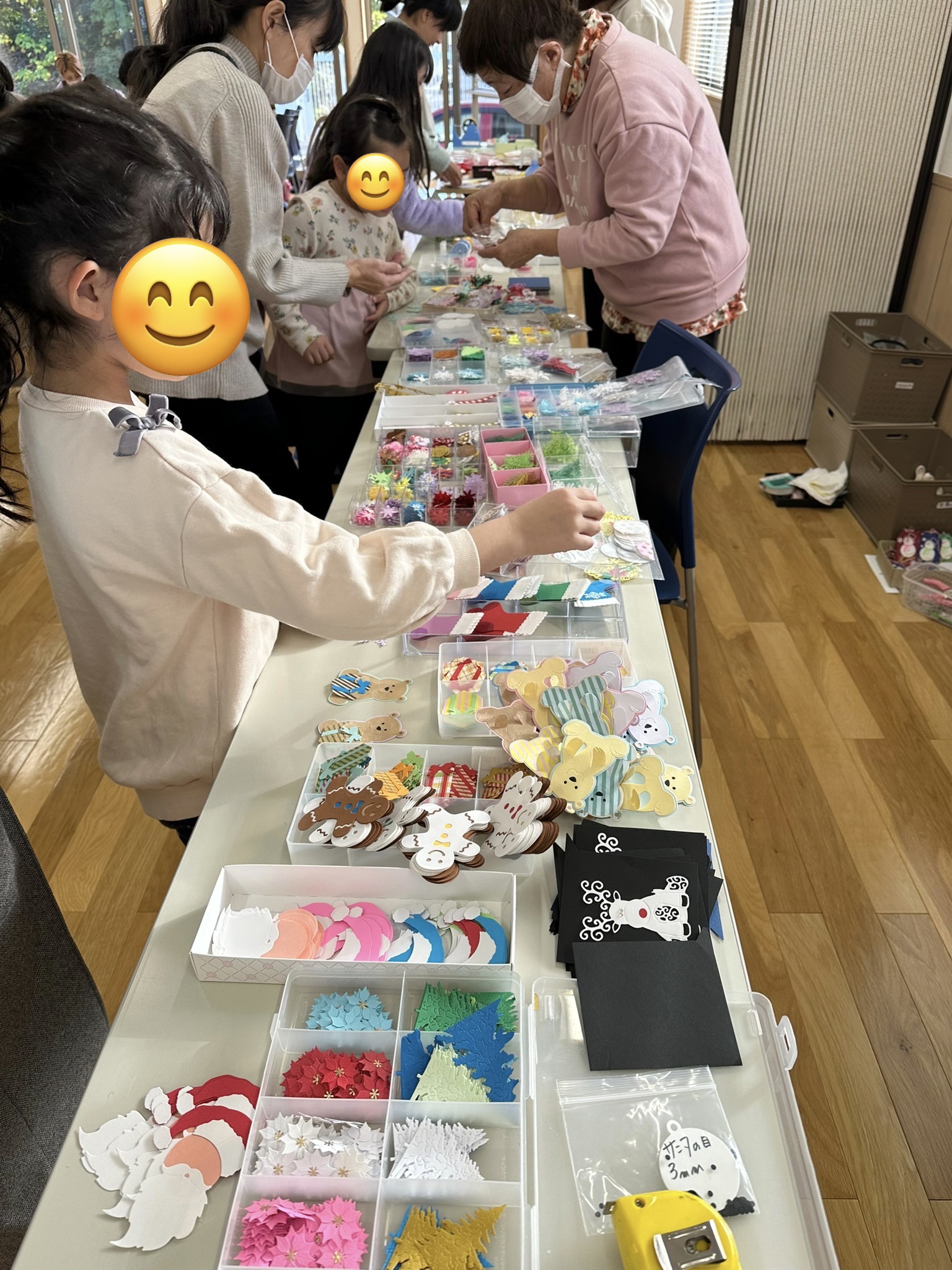 何十種種類もあるクラフトパンチパーツ、気に入ったパーツを組み合わせ、のりで貼っていきます